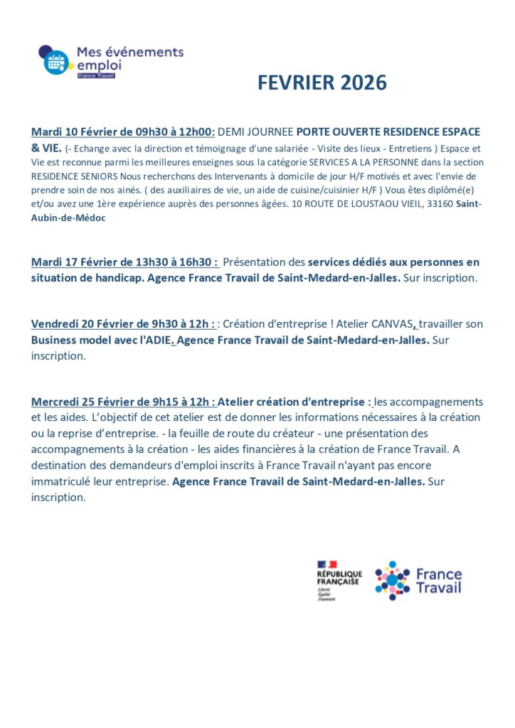 France Travail – Programme Février 2026 Entrez le mot recherché ci-dessus, le résultat s'affichera sur fond jaune dans la page.