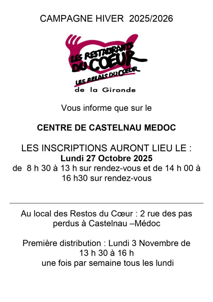 Nous vous rappelons que l’inscription reste une étape essentielle et obligatoire pour bénéficier de l’aide alimentaire des Restos du Coeur.