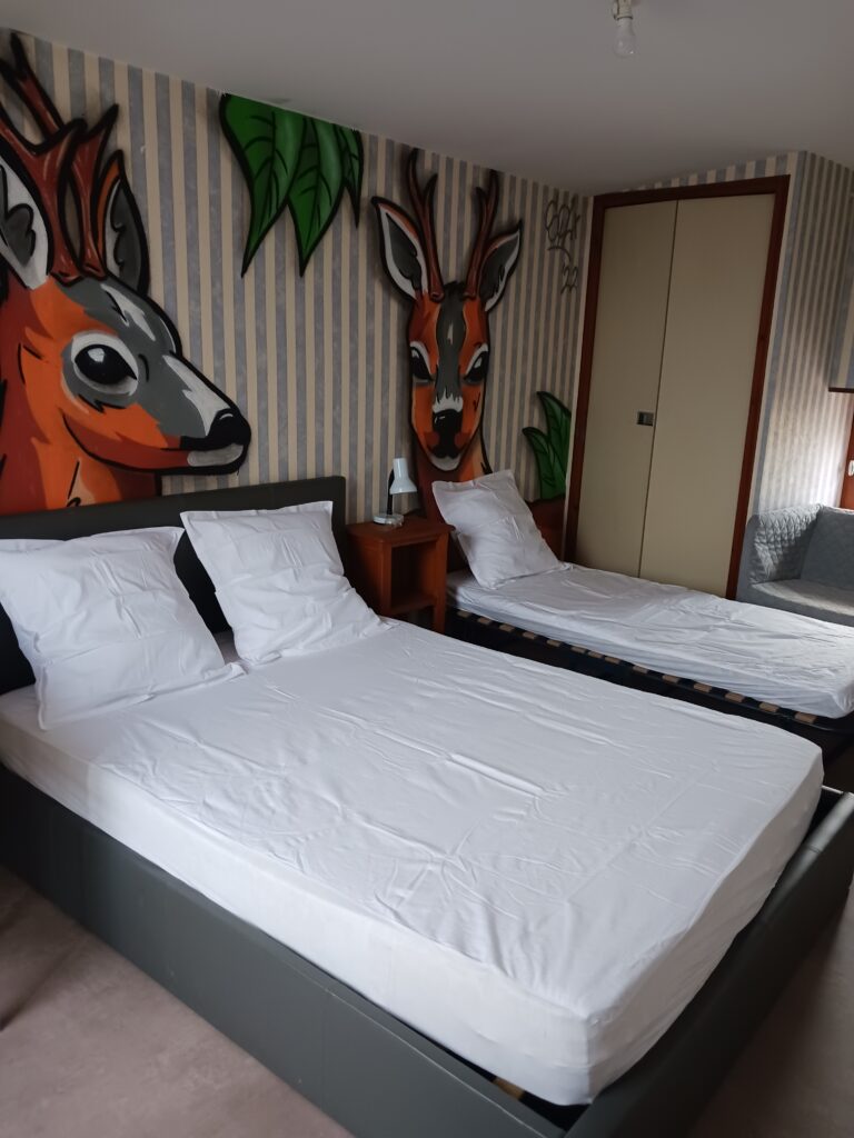 Vous avez la possibilité de louer la maison qui jouxte la salle afin d’y accueillir vos invités pour y dormir (8 personnes : 3 couchages doubles 140-190 et 2 couchages simples 90-190). Veuillez noter que les couchages sont à l’étage.
