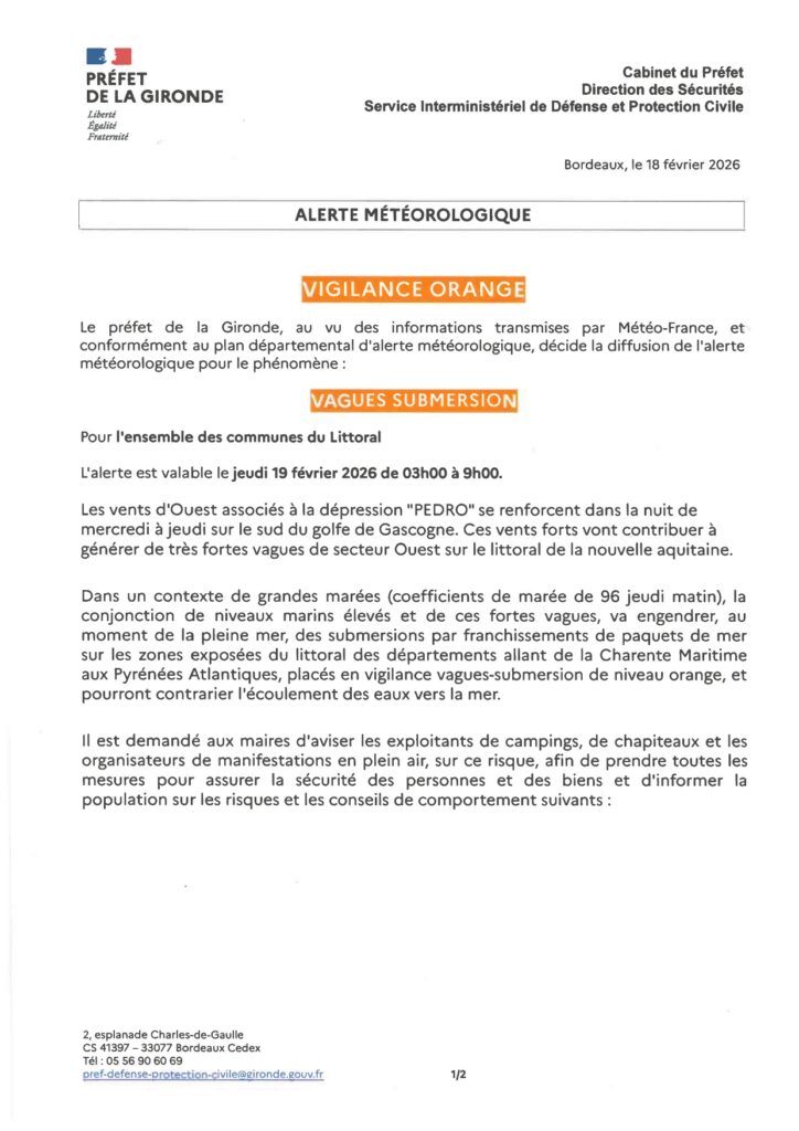 Vigilance Orange – Vagues submersion 19/02/2026